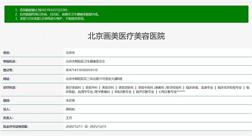 一家醫(yī)美醫(yī)院的口碑首先離不開(kāi)專精的資質(zhì)與合規(guī)保護(hù)。北京畫(huà)美醫(yī)療美容醫(yī)院經(jīng)北京市朝陽(yáng)區(qū)衛(wèi)生健康委員會(huì)審批成立,是二級(jí)整形外科醫(yī)院,持有《醫(yī)療機(jī)構(gòu)執(zhí)業(yè)許可證(PDY00345)》。這一審批過(guò)程嚴(yán)格且規(guī)范,意味著醫(yī)院在硬件設(shè)施、人員配備、技術(shù)水平等多方面都達(dá)到了相應(yīng)的標(biāo)準(zhǔn)。